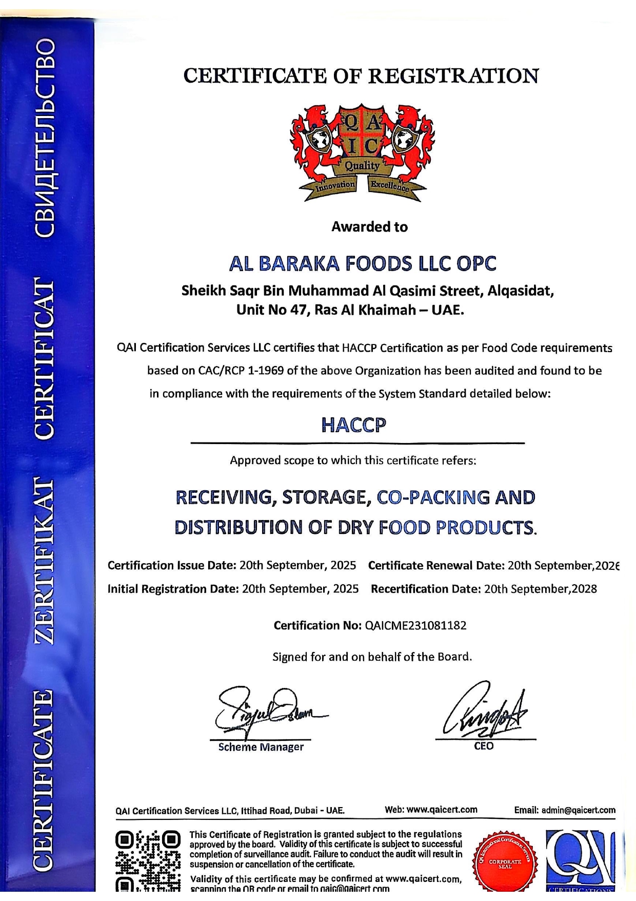البركة للأغذية، تأسست في عام 2012 في دولة طموحة دينماكية، الإمارات العربية المتحدة، في إمارة رأس الخيمة.